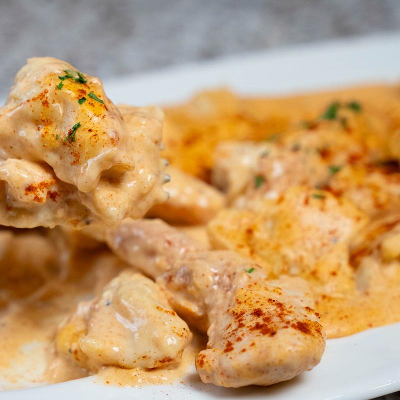 Tender strips of chicken breast with homemade dumplings smothered in paprikash sauce • Small Plate $15.95 | Large Plate $20.95
